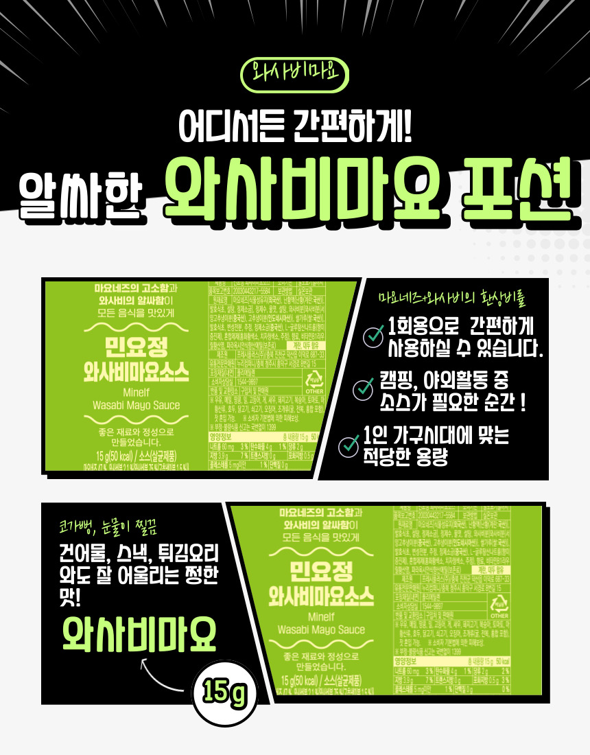 와사비마요 15g x 500봉 업소용 일회용 소스