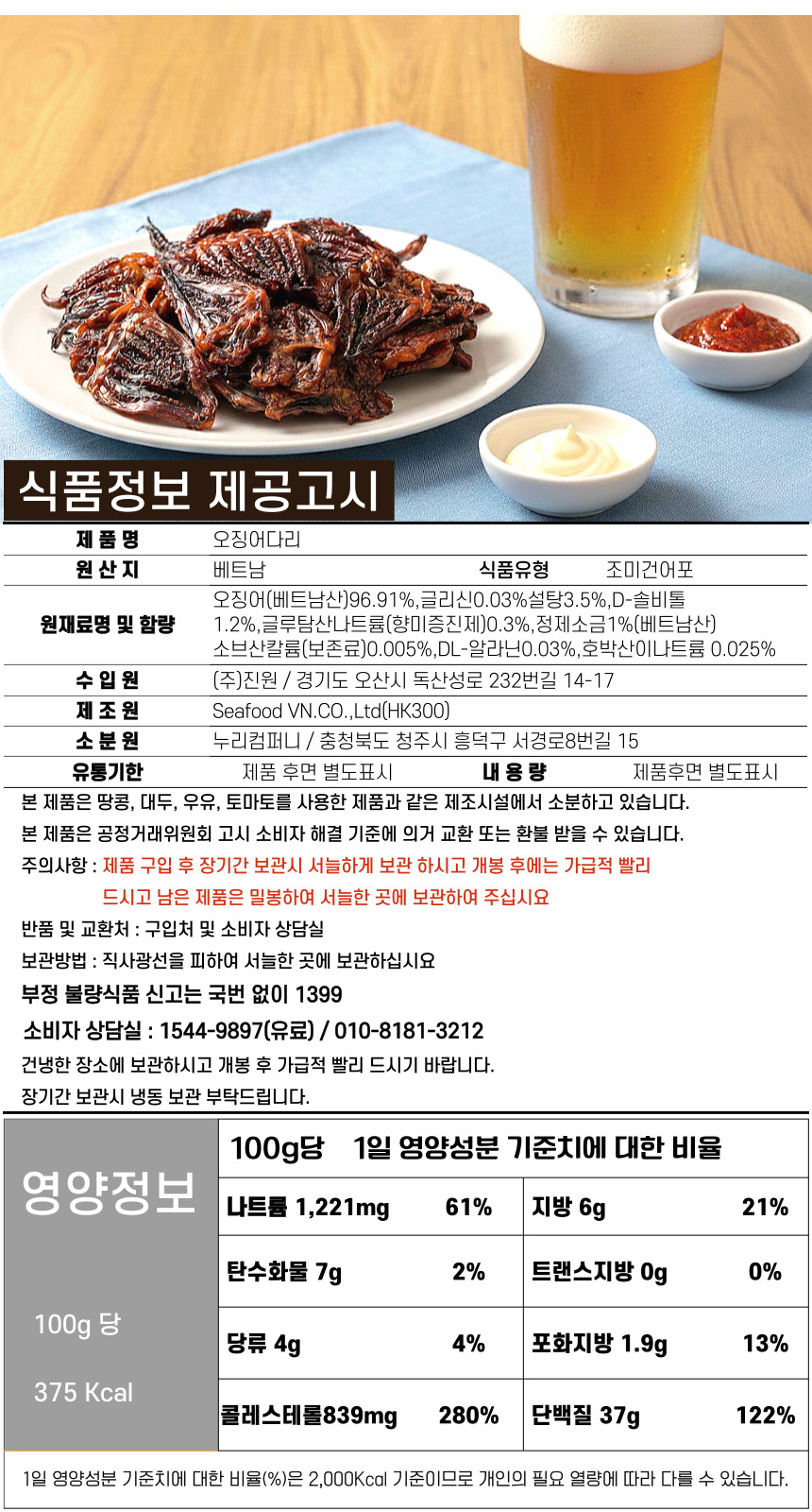 원재료명 (관계 법령에 따른 원산지 표시 포함) 및 함량