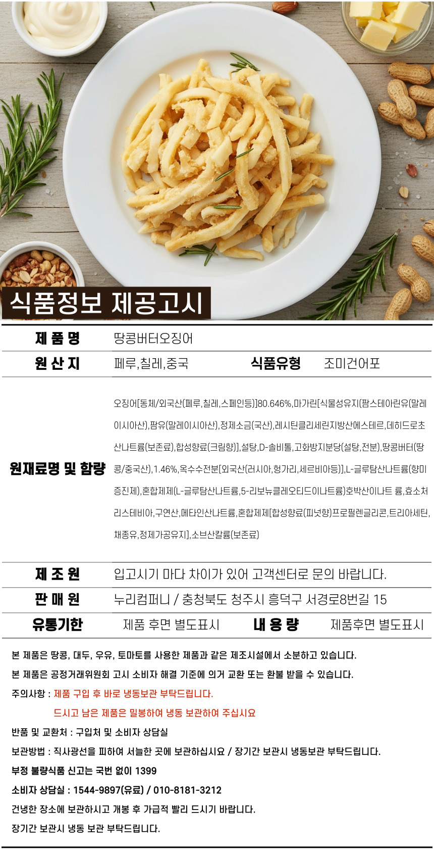 원재료명 (관계 법령에 따른 원산지 표시 포함) 및 함량